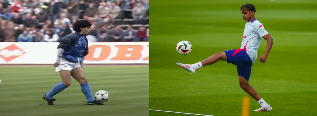 لامين يامال ظاهرة حقيقية و يمكن ملاحظة ذلك حتى في التدريبات. قبل المباراة مع جيرونا، رصدت عدسات الكاميرات اللاعب الإسباني وتذكر الكثيرون الإحماء التاريخي لمارادونا. اللاعب الذي يتمتع ببراعة فائقة في نادي برشلونة و حركاته بالكرة تثبت ذلك، واليوم يُقال عنه أنه أحد أفضل اللاعبين في العالم.